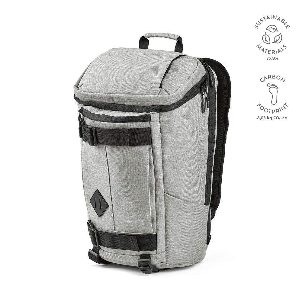EDINBURGH BPACK. Plecak w stylu wojskowym wykonany z 600D, poliestru z recyklingu o wysokiej gęstości i podszewki z 210D poliestru z recyklingu 17'3'